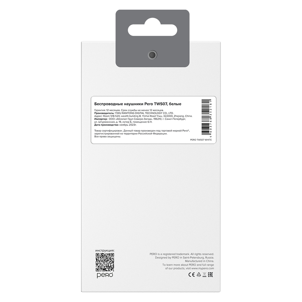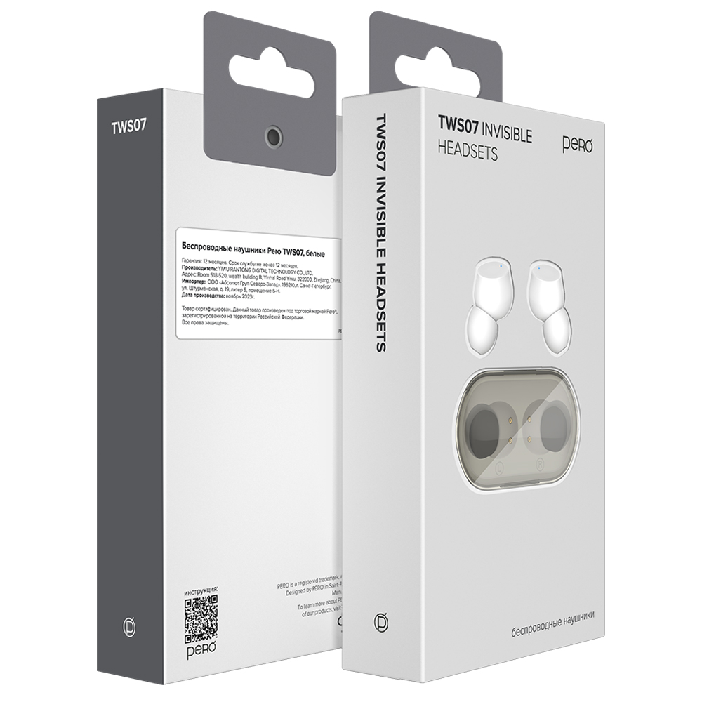 Беспроводные наушники PERO TWS07 INVISIBLE White